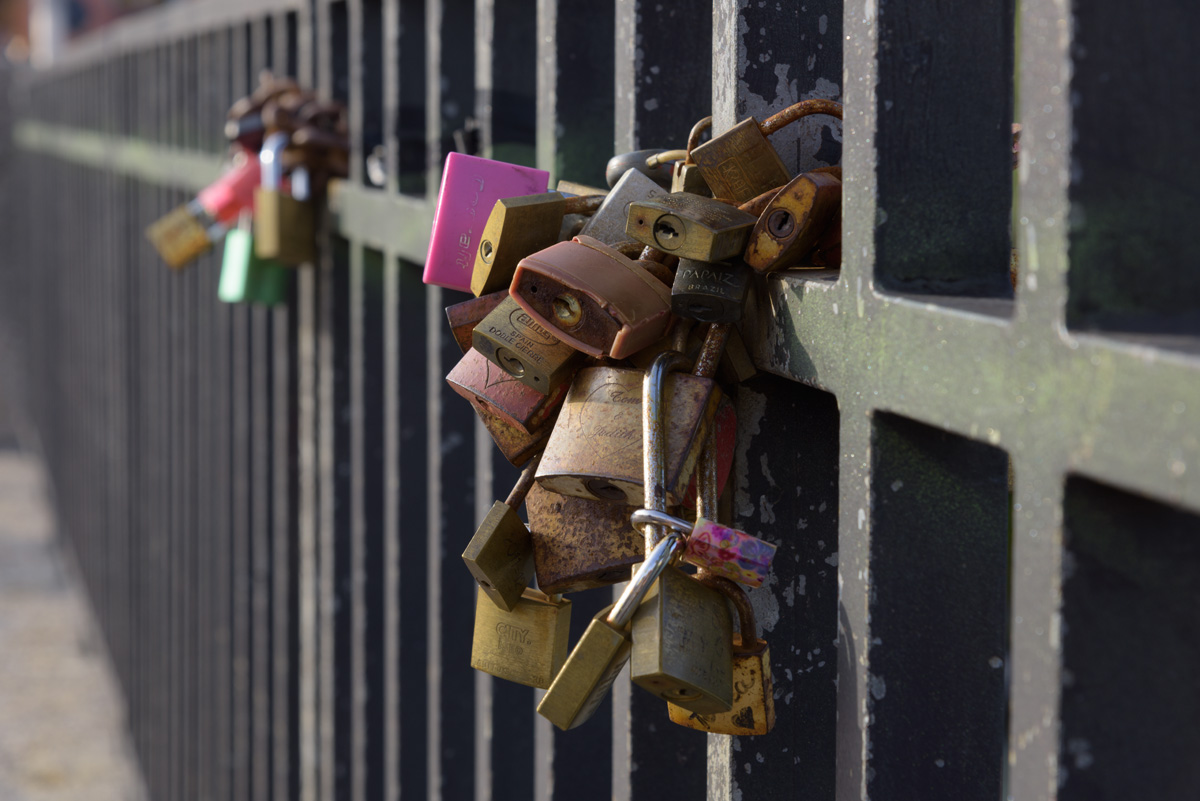 Love locks on the bridge (“Brücke” over the Inns River, hence the town’s name, Innsbruck).