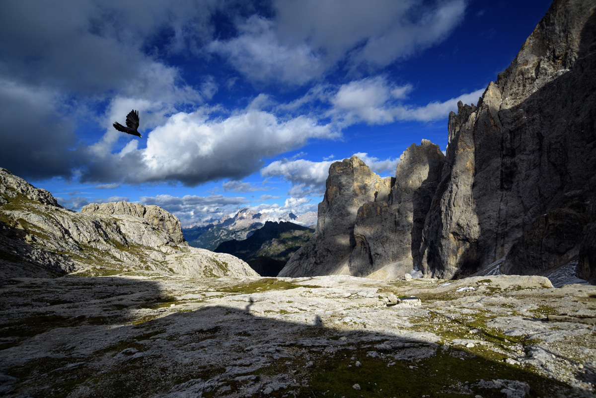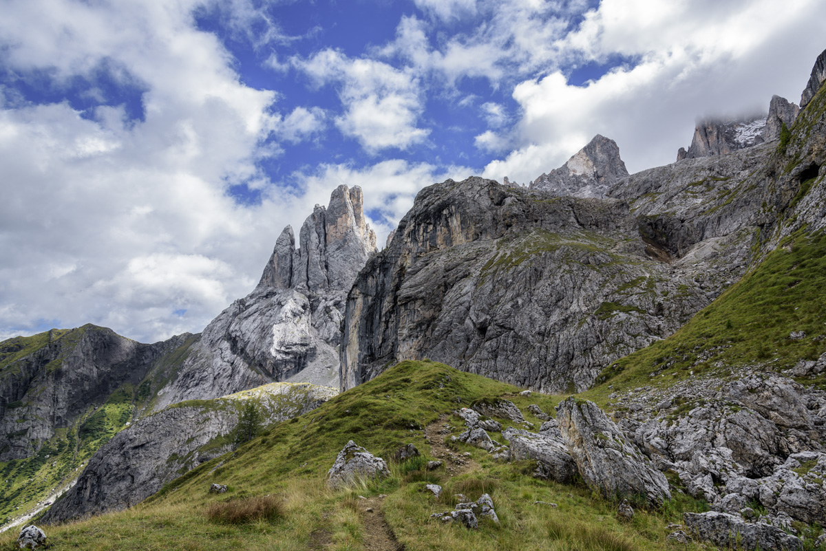 Pan from Passo San Pelligrini to the spiky mountains we will be passing through.