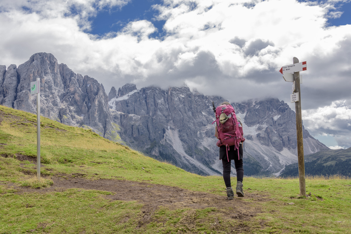Pan from Passo San Pelligrini to the spiky mountains we will be passing through.