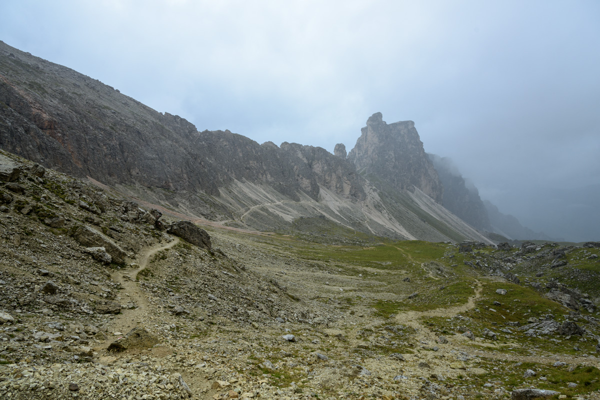 The next morning offered us a bit of dampness at Rifugio Puez to begin our next day on the trail.
