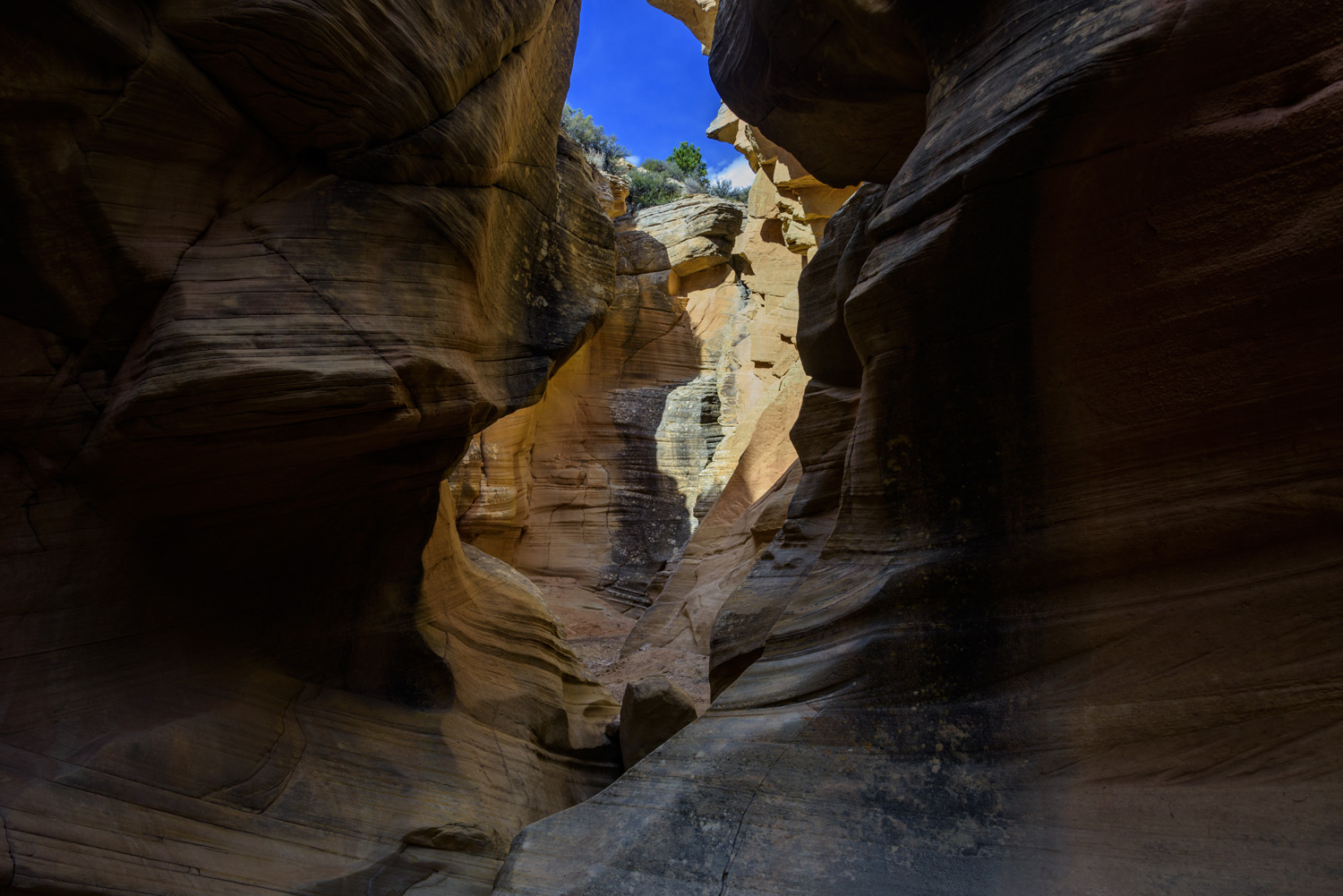 A little drop getting into this slot canyon. You can see that we had a cheater rope.